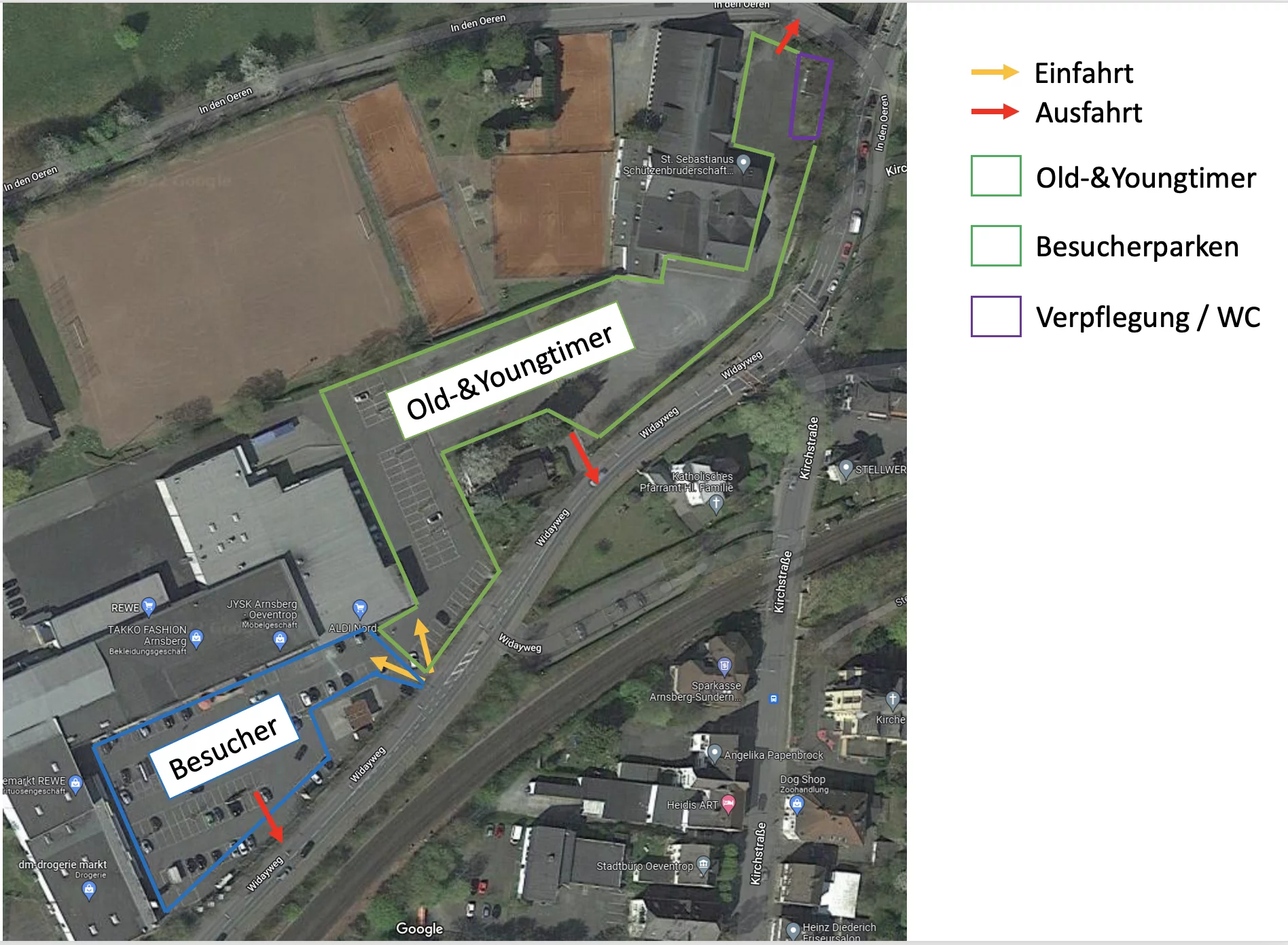 Wir bitten ebenfalls darum, dass die Zuschauer und Besucher ohne Ausstellungsfahrzeug in dem dafür vorgesehenen Bereich "Besucher" vor dem Rewe Markt parken.